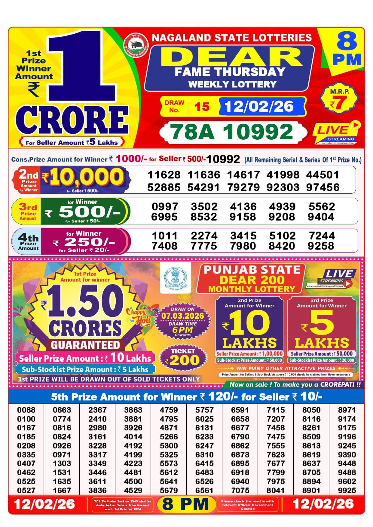 Today night 8pm dear lottery Sambad | আজকের রাত আটটার 8pm ডিয়ার লটারি রেজাল্ট