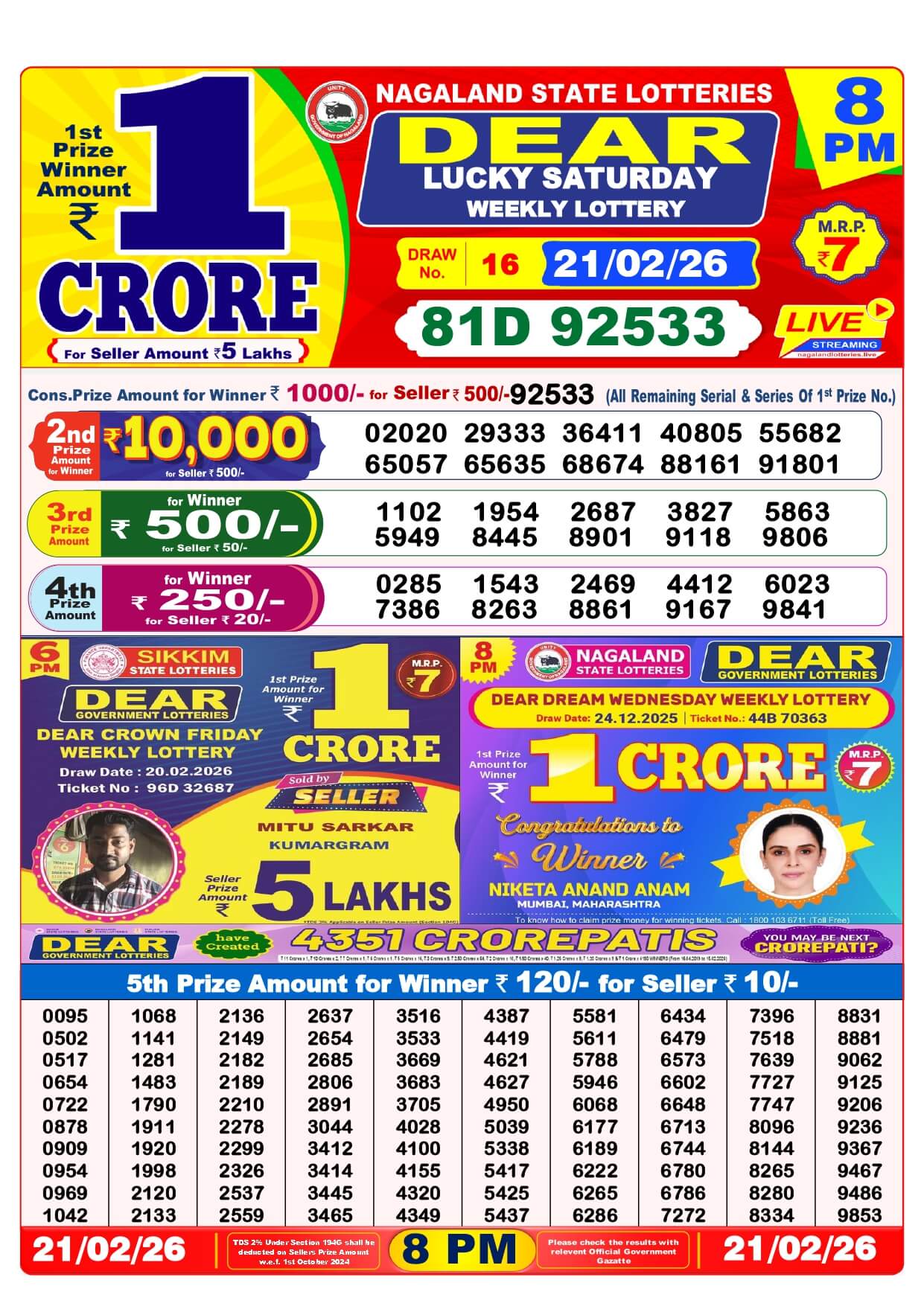 Today sondha 6pm dear lottery sambad | আজকের সন্ধ্যা 6pm ডিয়ার লটারি রেজাল্ট