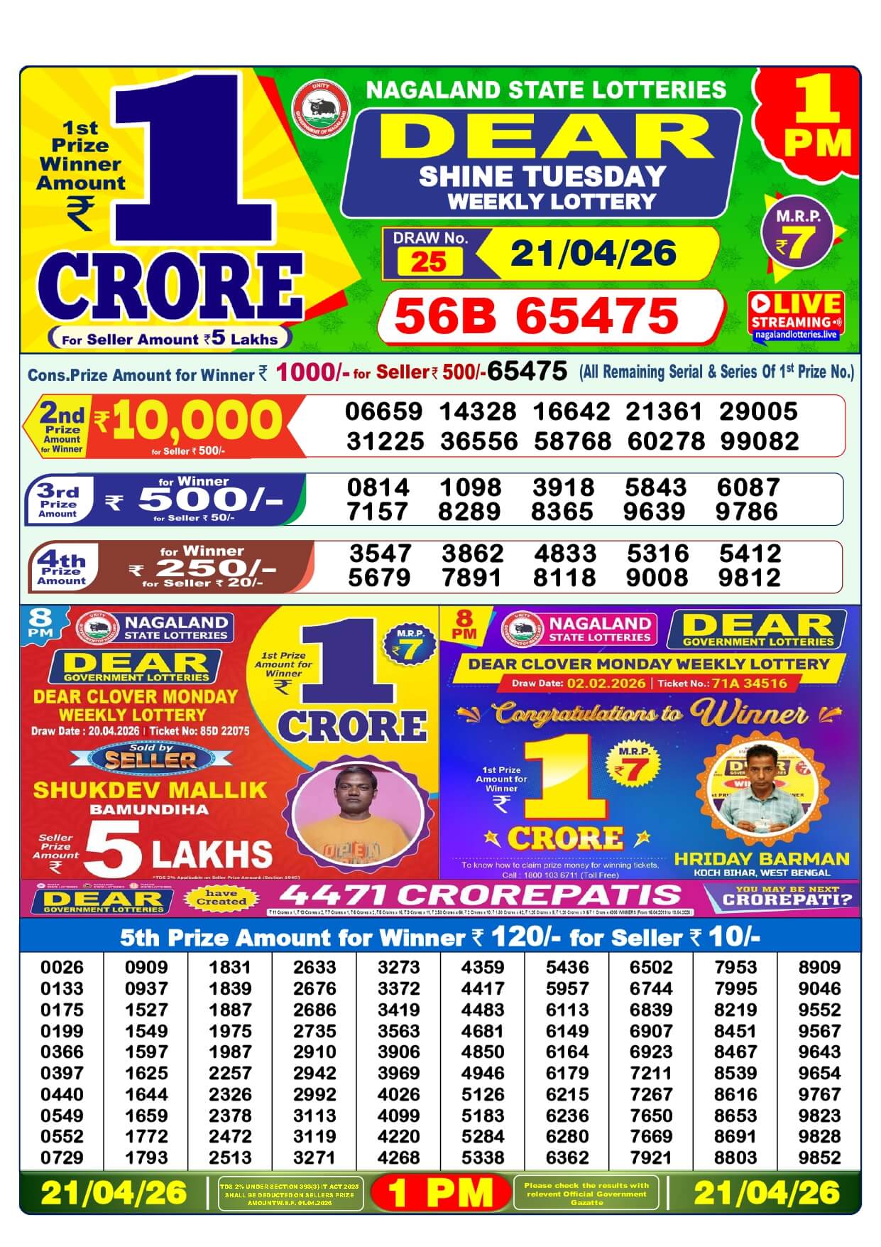 আপনারা যদি আজকের মর্নিং এর বা দুপুরে একটা ডিয়ার লটারি টিকিট কেটে থাকেন। তাহলে তার ফলাফল বা রেজাল্ট যথাসময়ে আমাদের এই ওয়েবসাইটের মাধ্যমে প্রকাশিত করা হবে আপনার ডিয়ার লটারি টিকিট নাম্বারের সাথে ডিয়াল লটারি রেজাল্টের নাম্বার মিলিয়ে দেখে নিতে পারবেন। আপনি যদি এই ডিয়ার লটারি টিকিট খেলায় মর্নিং এর টিকিট কাটতে চান তাহলে আপনাকে আগের দিনের সকাল থেকে শুরু করে সন্ধ্যা পর্যন্ত মর্নিং এর ডিয়ার লটারি টিকিট বিক্রি হতে শুরু করে দেয়।আপনার যেকোন ডিয়ার লটারি কাউন্টার থেকে মর্নিং এর ডিয়ার লটারি টিকিট সংগ্রহ করতে হবে এবং যথাসময়ে রেজাল্ট প্রকাশিত হওয়ার পর এই টিকিট এর সঙ্গে ডিয়ার লটারি রেজাল্টের নাম্বার মিলিয়ে দেখে নিতে পারবেন। এবং এই ডিয়ার লটারি লক্ষ্য টাকা থেকে শুরু করে কোটি টাকা পর্যন্ত পুরস্কার মানি জিততে পারবে।